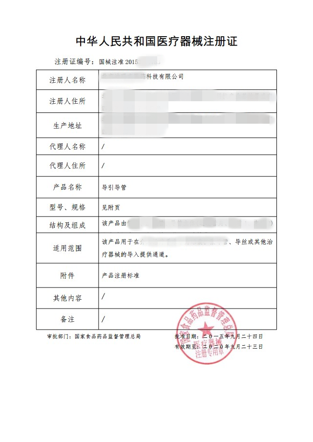 醫(yī)療器械產(chǎn)品注冊(cè)證